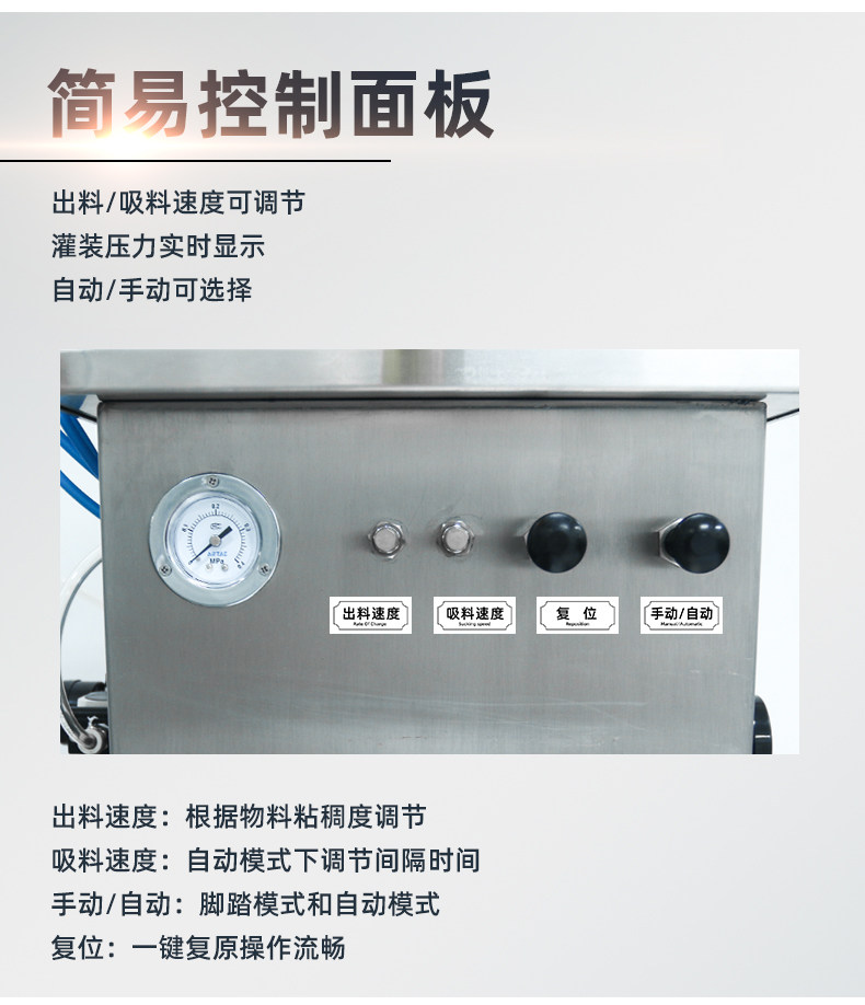 ● 控制面板配有气压表,可随时监控气压,出料、吸料速度可调节。